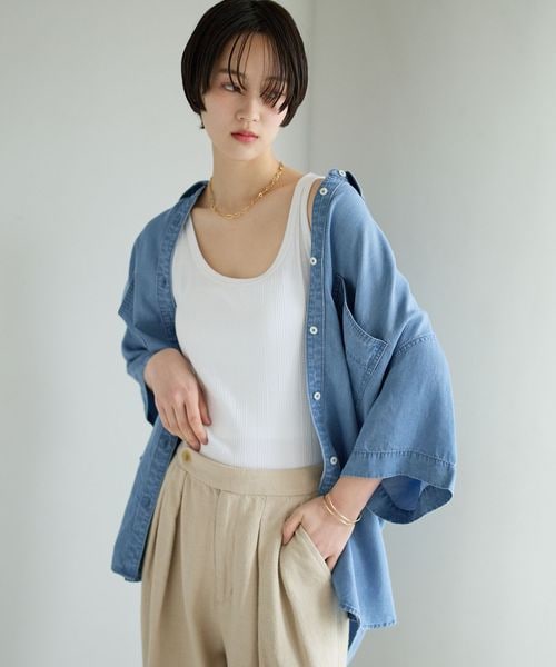 [簡単ブラウジング仕様]2WAYデニム半袖シャツ