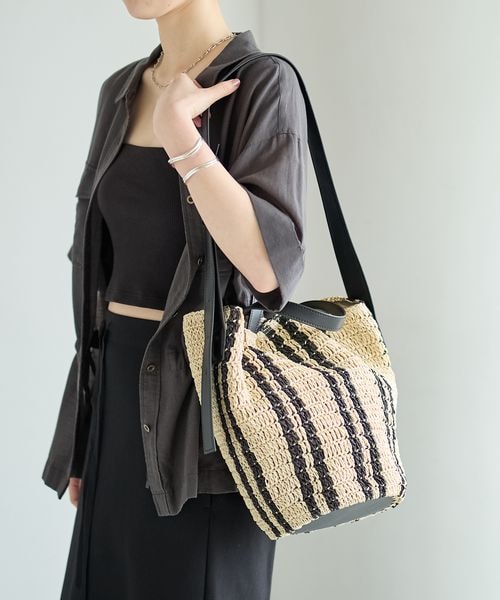 ≪予約≫[2WAYで使える]ストライプバケツトート