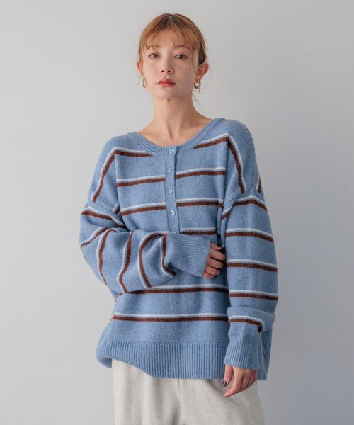 [前後どちらでも着られる]2WAYボーダーニットプルオーバー
