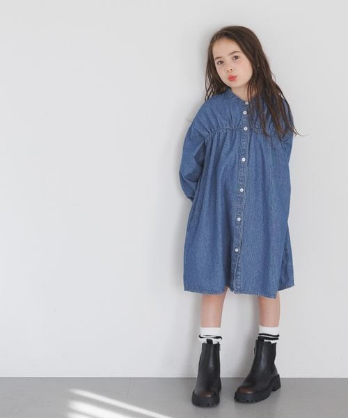 [羽織でも、一枚着としても♪]ギャザ-ボリュームデニムワンピ(KIDS)