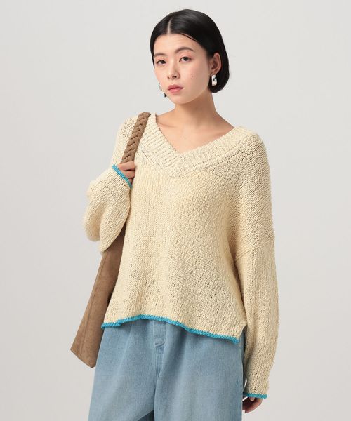 [春まで着られる]カラーヘムVネックニットプルオーバー