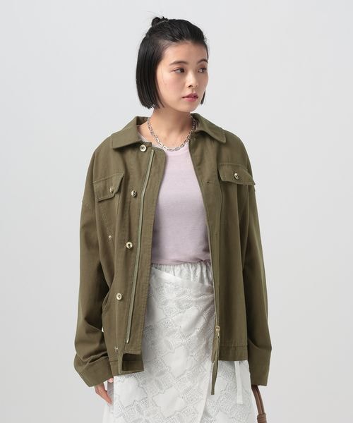 [春の羽織りに♪キレイ目見え素材]ヘビーオックスミリタリージャケット