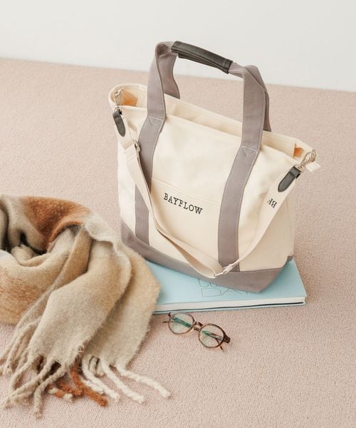 [旅行やマザーズバッグに]LサイズショルダーZIPロゴトート