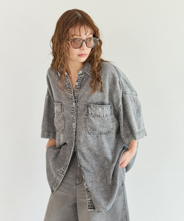 [簡単ブラウジング仕様]2WAYデニム半袖シャツ