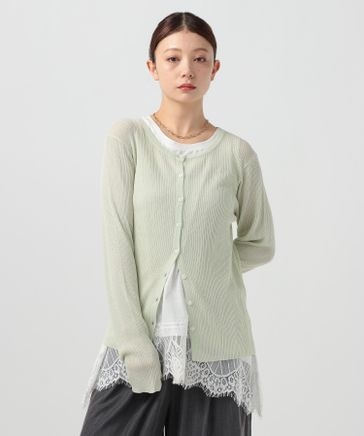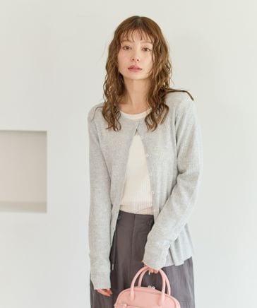 [春夏の羽織りに]シアーリブニットクルーカーディガン