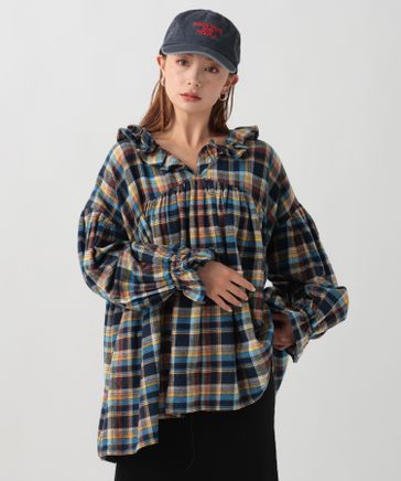 【INDIA IS BEAUTIFUL(インディアイズビューティフル)】ツイルチェックブラウス