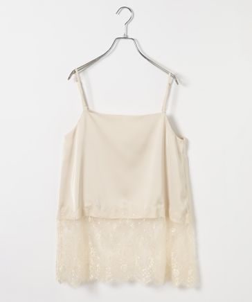 [長さ調整可/トレンドアイテム]サテン裾レースキャミ