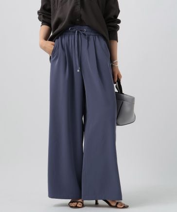 [長い期間穿ける]ウエストシャーリングサテンパンツ