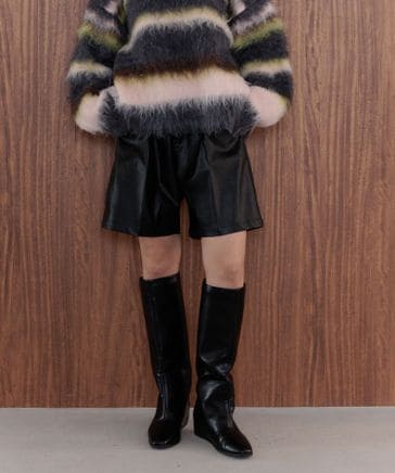[選べる丈感]フェイクレザーショートパンツ