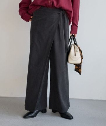 [冬もあったか]裏起毛ワイドイージーパンツ