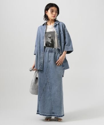【HEREIAM】夏トップス合わせで秋を先取り!メッシュベロアスカート