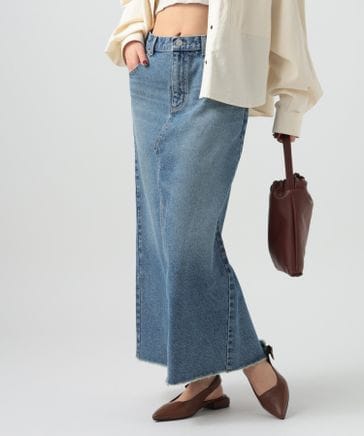 [深めバックスリットで動きやすい]デニムナロースカート