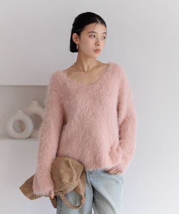 [Vネックで華奢見え]シャギーニットVネックプルオーバー