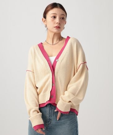 フェイクレイヤードニットカーディガン