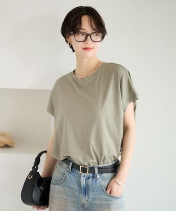 [二の腕やヒップもカバー]シルケットドルマン半袖Tシャツ