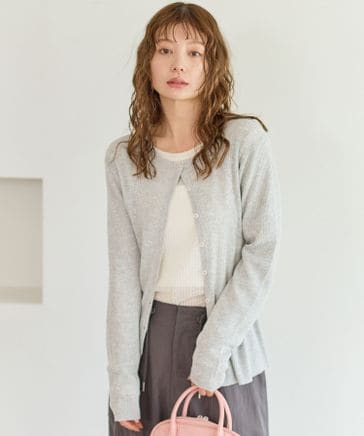 [春夏の羽織りに]シアーリブニットクルーカーディガン