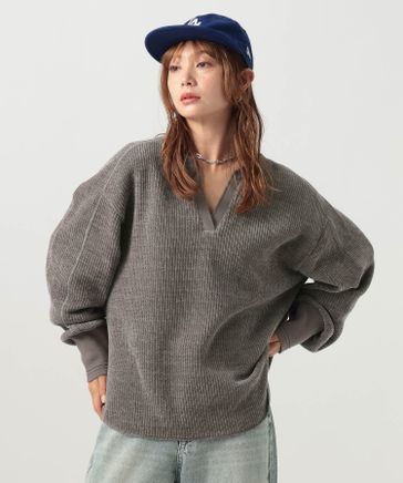[ヒップまでカバーする]オーバーサイズVネックニット