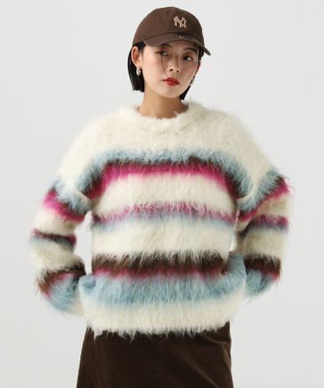 ロングヘアーボーダーニット