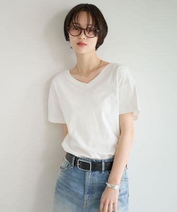 [V・Uネックで着られる]シルケット2WAY半袖Tシャツ