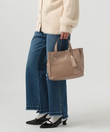 [長財布、500mlボトル収納可]エナメル風ショッパー