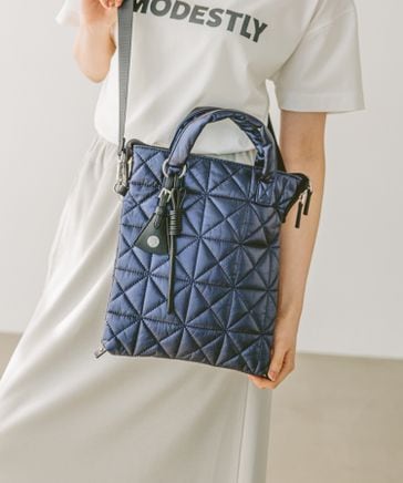 [A4サイズ収納可]ポーチチャーム付きマルチWAYパフトートバッグ