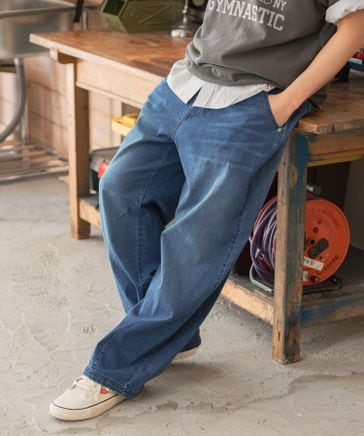 【接触冷感・ストレッチ】クールタッチワイドセーラーデニムパンツ