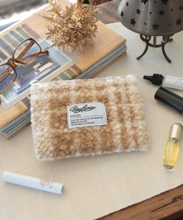 BFモコモコチェックフラットポーチ12.5×16