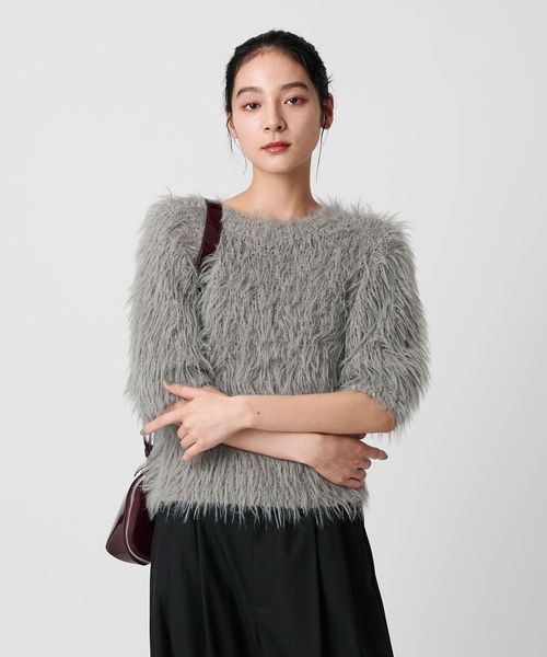 フェザーヤーン ハーフスリーブ ニットプルオーバー