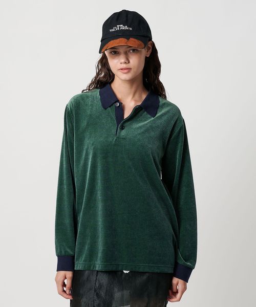<ATTISESSION>ベロア ボーダー ポロシャツ