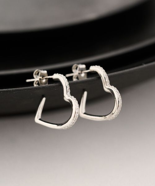キュービックジルコニア ライン ハート ピアス