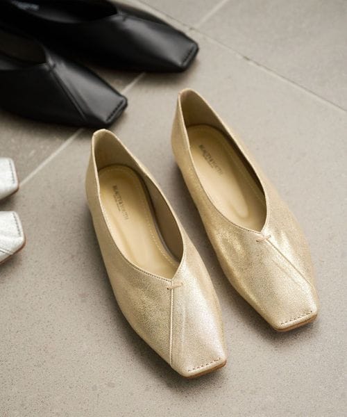 Vカットステッチ フラットシューズ