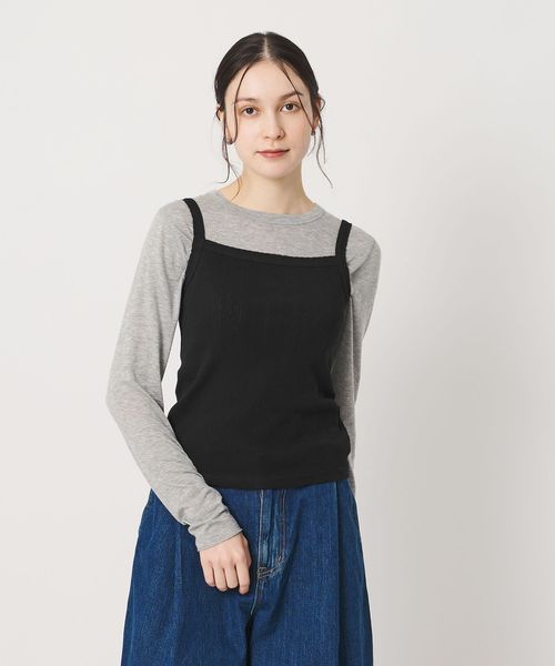 コットン パターンメッシュ キャミソール