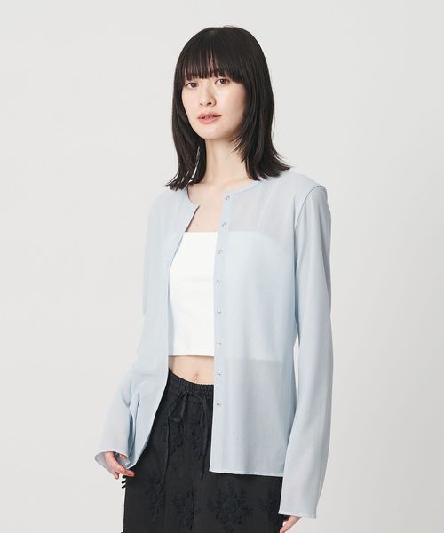 リングボタン チュール カーディガン ウォッシャブル 接触冷感