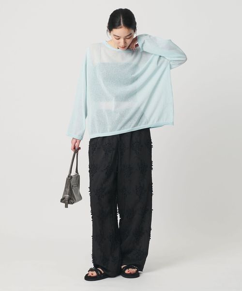 麻ブレンド ルーズ ボートネック ニットプルオーバー ウォッシャブル
