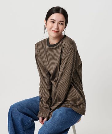ポリエステルコットン ベロアボーダー ロングスリーブTシャツ