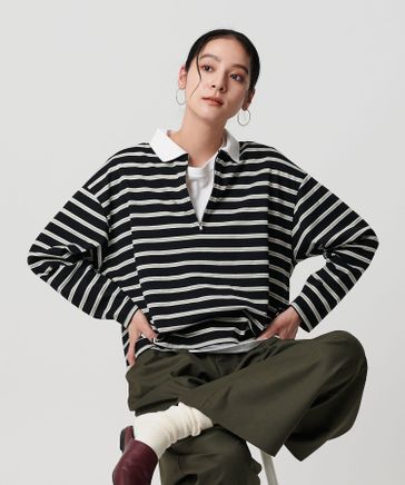 【WEB限定】マルチボーダー ハーフジッププルオーバー