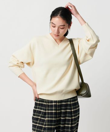 ソフトコットン Vネック スムース ニットプルオーバー ウォッシャブル