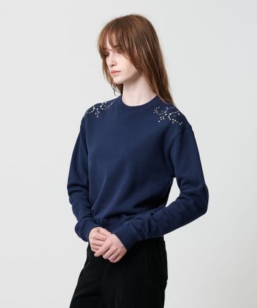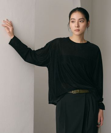 【WEB限定】ラメ裏毛 キーネック 8分袖プルオーバー