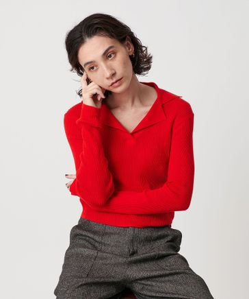 コットンリブ オープンカラーニット -ウォッシャブル-