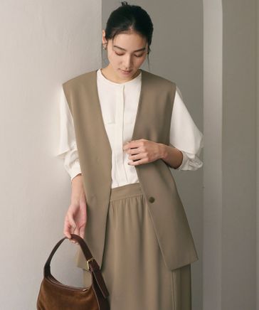 【WEB限定 Wardrobe DAILY MINIMAL】ダブルクロス リボンベルトジレ ウォッシ