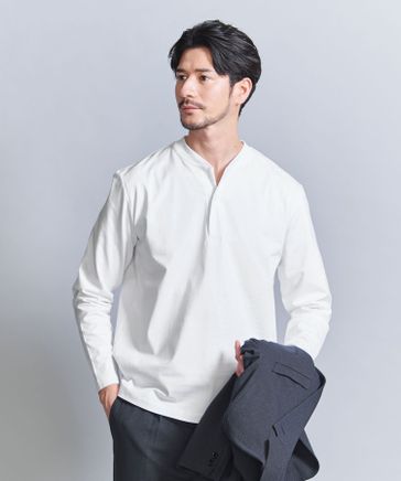 【WEB限定 WARDROBE SMART】クリア ガスコットン ヘンリーネック カットソー【抗菌・