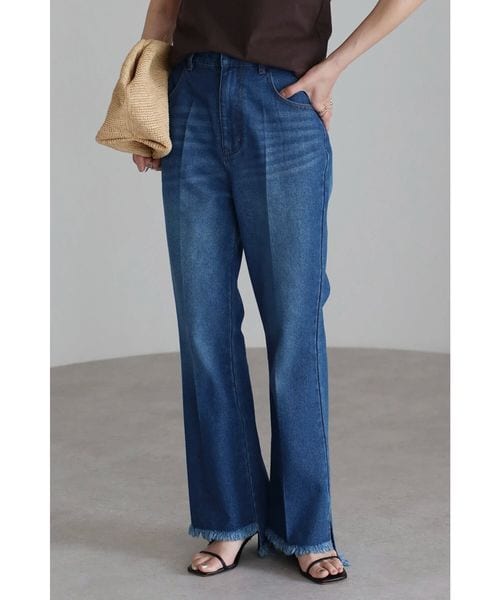 裾スリットフリンジセンタープレスデニム