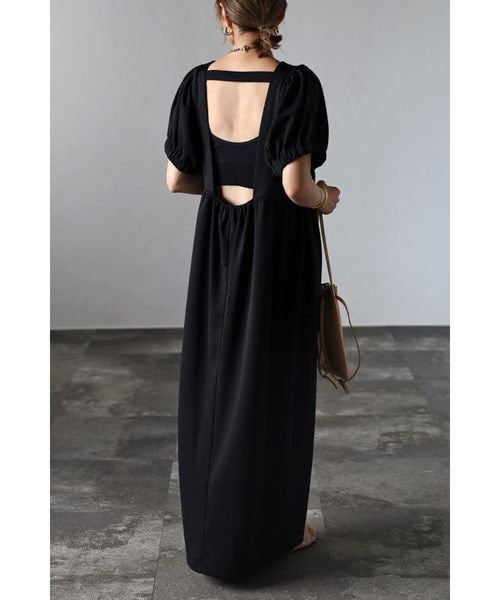 バックオープンパフスリーブコクーンワンピース