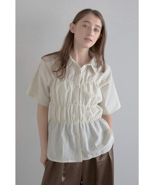 bustier style shirt / シャーリングビスチェ風ストライプシャツ