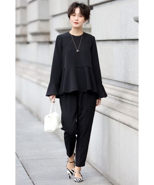 [SET]フレアラインペプラムブラウス×ハイウエストテーパードパンツ