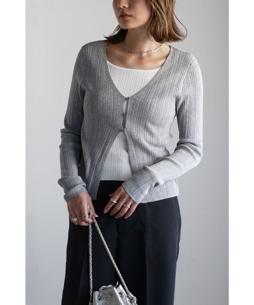 ランダムリブフロントボタンレイヤード風プルオーバー