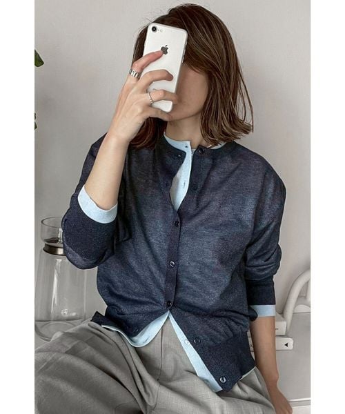 [SET]クルーネックラメシアーコンパクトカーディガン2点セット