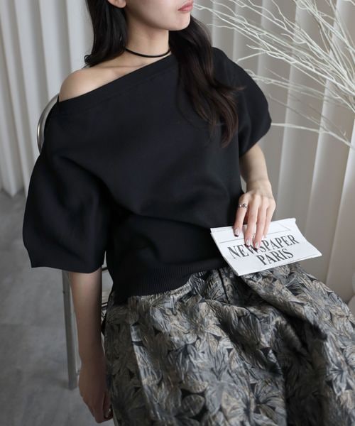 【 2026 SS 新作 】ランタンスリーブボートネックニット/オフショルニット