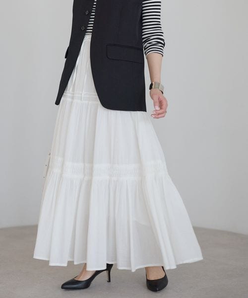 【India Fabric】コットンティアードフレアスカート