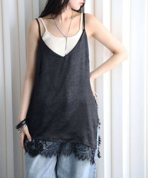 レースレイヤードサテンキャミチ